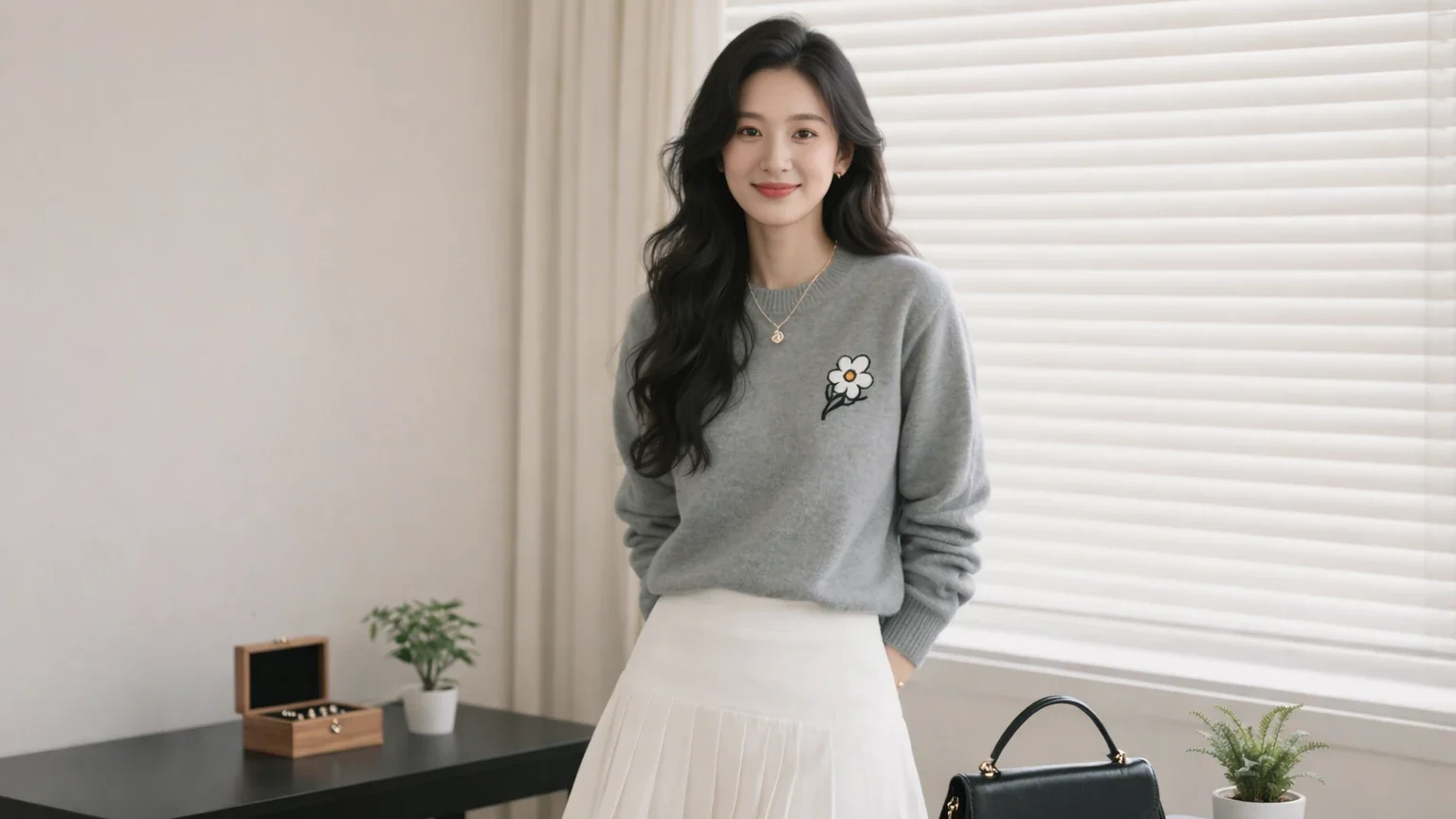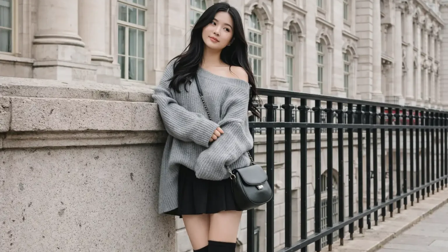 Mini skirt outfits remain extremely popular in Korean fashion. This outfit style creates a youthful and stylish appearance.