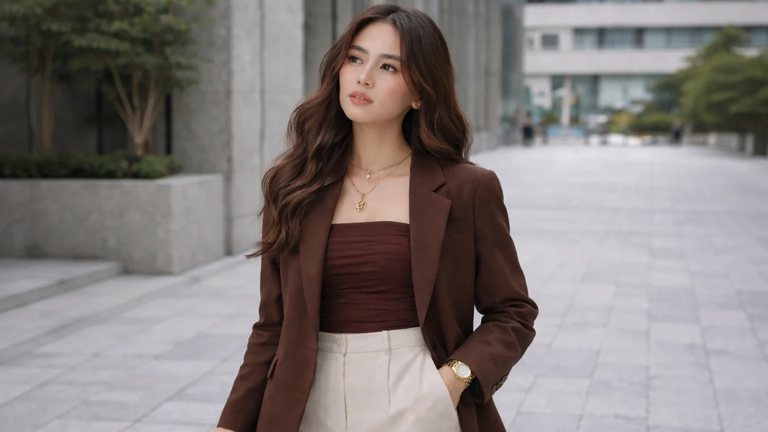 The oversized blazer outfit is one of the most iconic Korean looks. This outfit creates a stylish balance between casual and formal fashion.