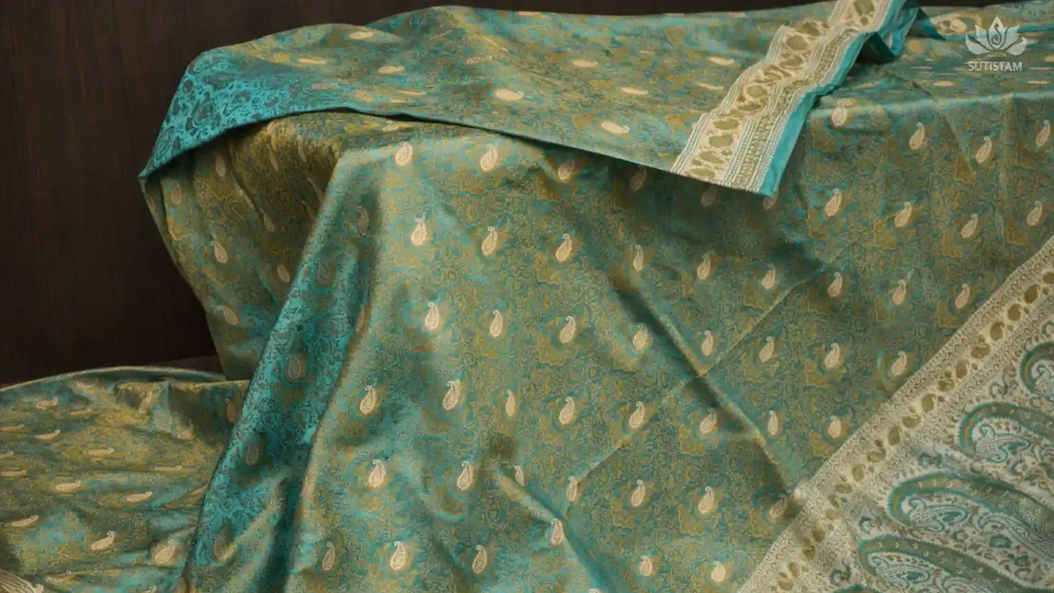 Katan is made from pure silk threads that are tightly twisted to create a strong and smooth fabric. It is one of the most traditional and luxurious Banarasi weaves. Known for its durability and glossy texture, Katan sarees often feature elaborate zari work and detailed patterns.