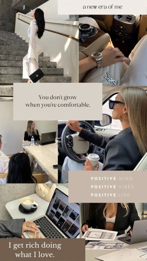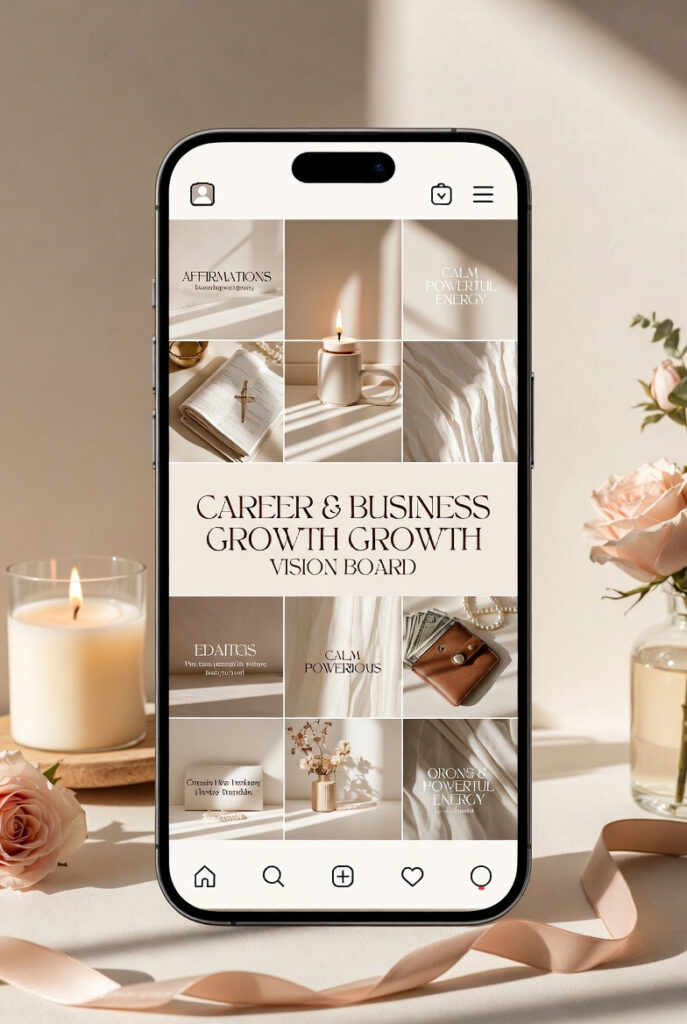 This vision board focuses on where you want to be professionally. It can include job roles, business milestones, brand recognition, leadership goals, or freedom-based work life.